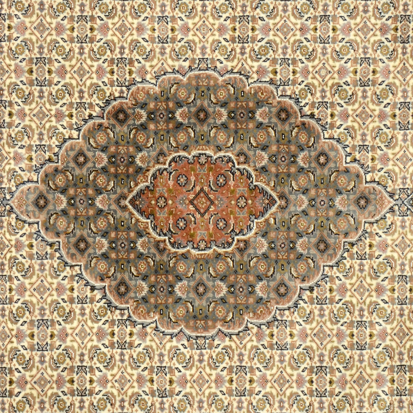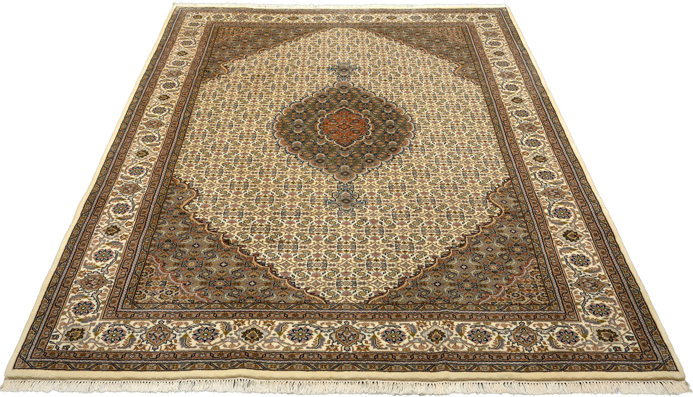 Tabriz Tapis: Tabriz est une grande ville perse située près de la frontière turque. Située sur la légendaire route de la soie, elle était autrefois considérée comme la porte de l'Orient. Le Täbriz Mahi, qui présente une densité de nœuds très élevée, est particulièrement connu. L'excellente finition d'un tapis Tabriz et ses motifs d'une finesse exceptionnelle en font un tapis particulièrement adapté au salon!